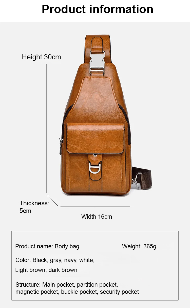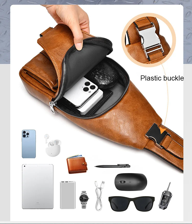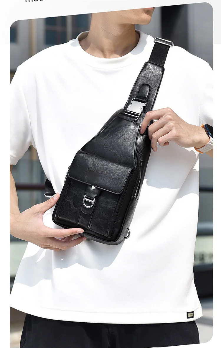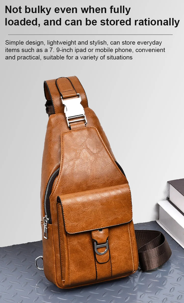 【✨Soft and Durable Italian Cowhide】Premium Leather Water-Resistant Chest Bag, Single Shoulder Crossbody