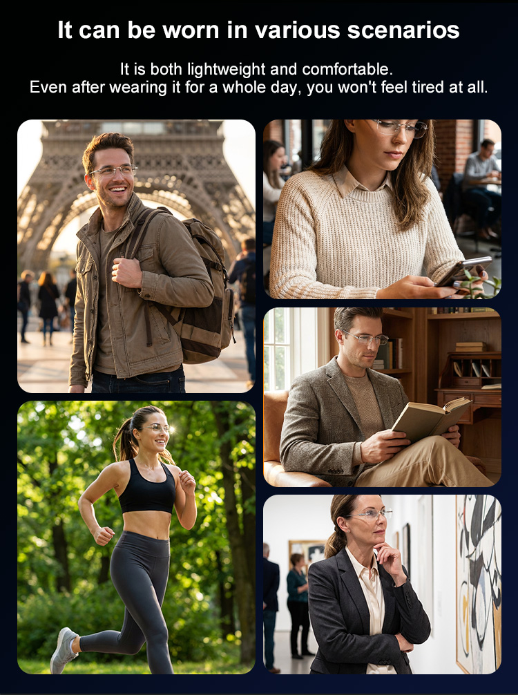 No need for expensive eye exams, no need to wait for custom-made glasses, and no need to replace glasses due to changes in prescription! One pair of glasses can last a lifetime!