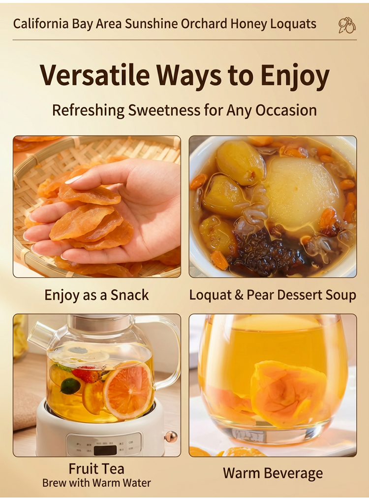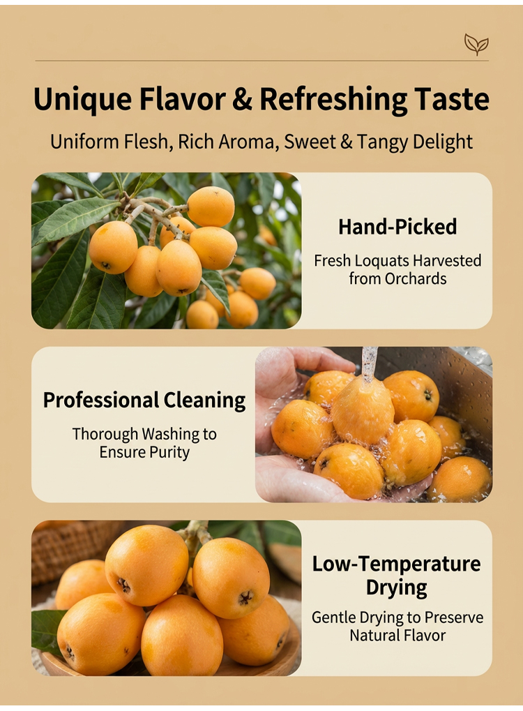 ✅ Zero fat, zero cholesterol, no additives, no preservatives—preserving the original flavor of loquat.